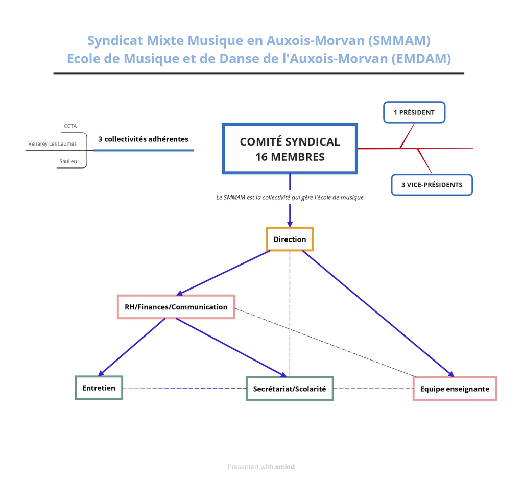 L’établissement est géré par le Syndicat Mixte Musique en Auxois-Morvan (SMMAM) qui est composé d'élus de différentes collectivités : la Communauté de Communes des Terres d’Auxois (CCTA), communes de Venarey-les-Laumes et commune de Saulieu.